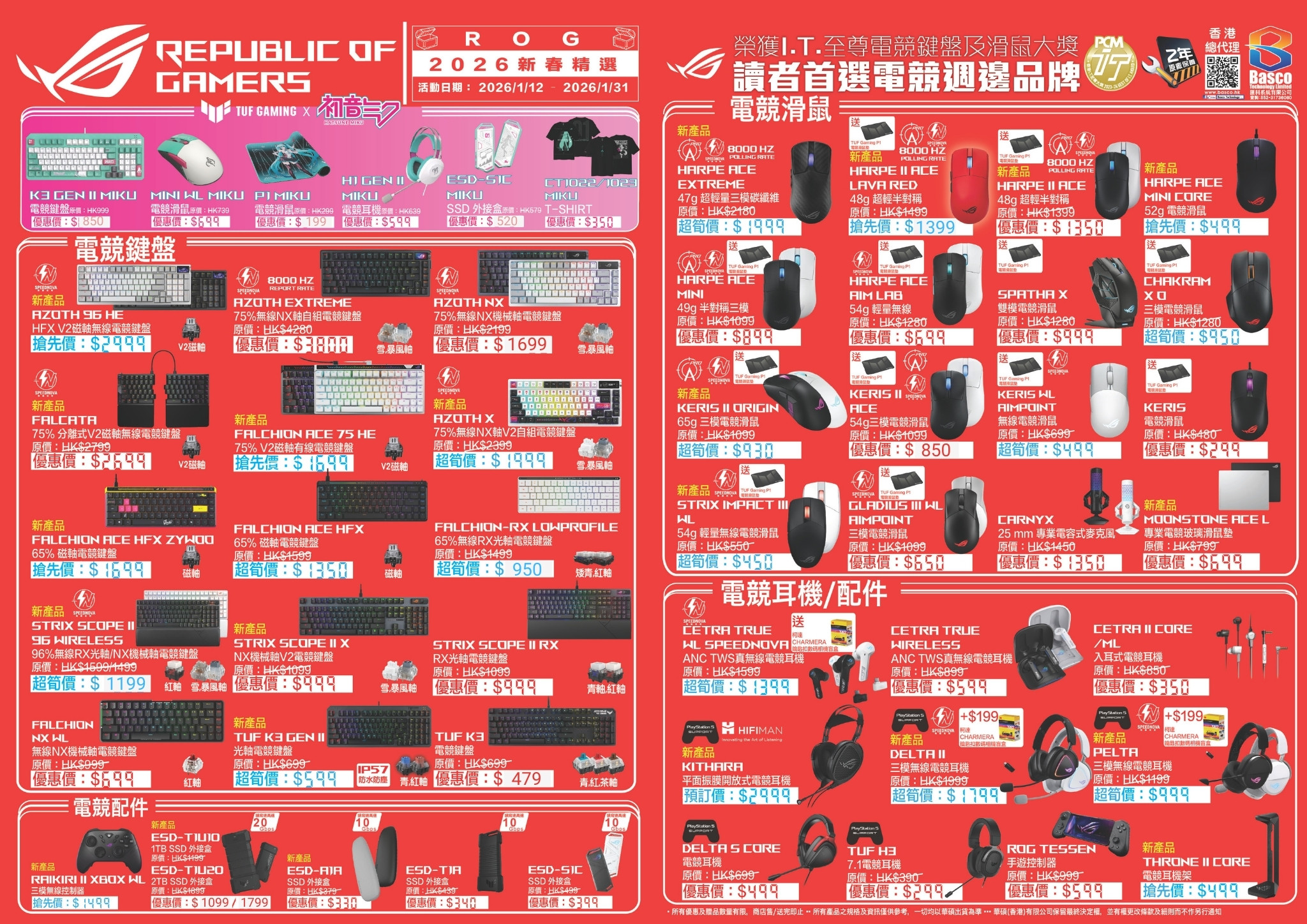 1)ASUS ROG Gaming Gear 新年優惠發售中!