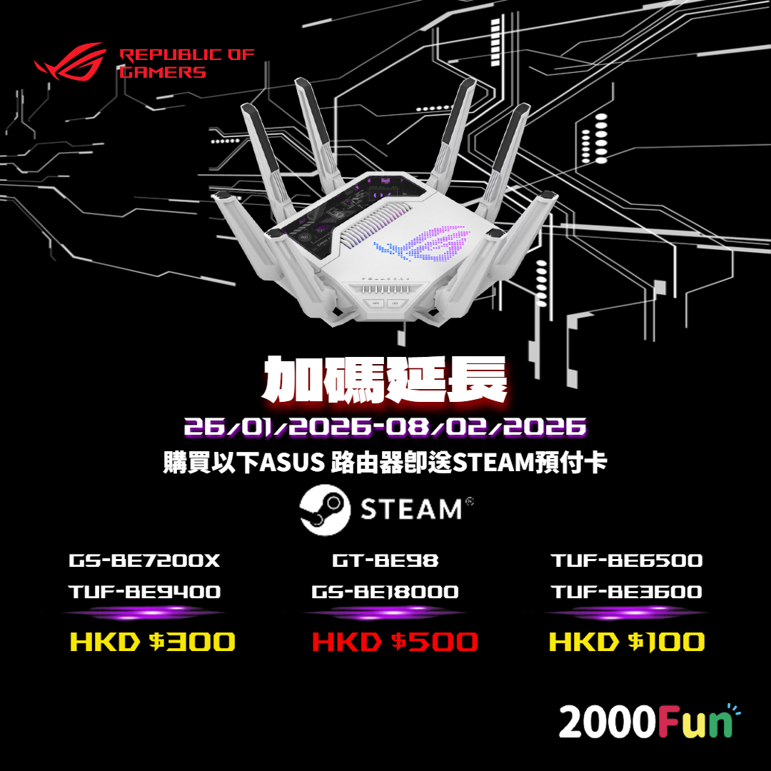 ROG Gear/ 顯示器 /路由器及Powered by ASUS電腦砌機 新年優惠