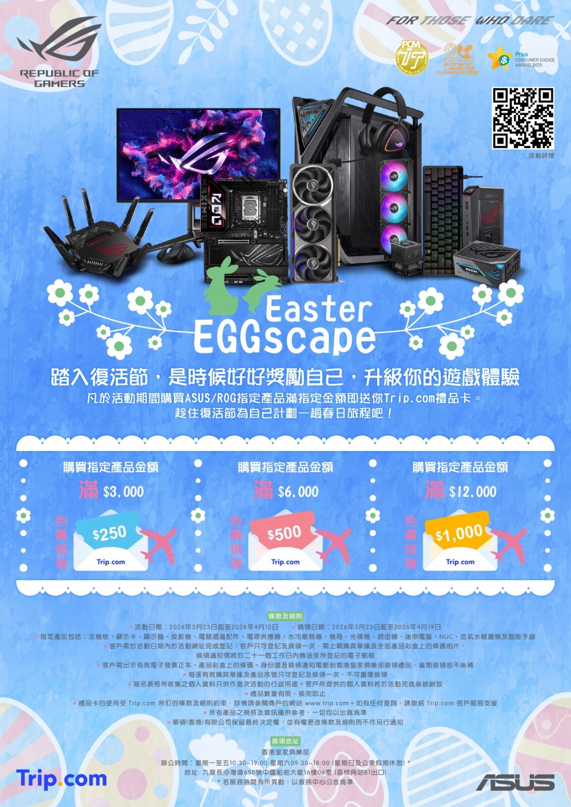 【Easter EGGscape】買ASUS/ROG指定產品滿指定金額即送Trip.com禮品卡