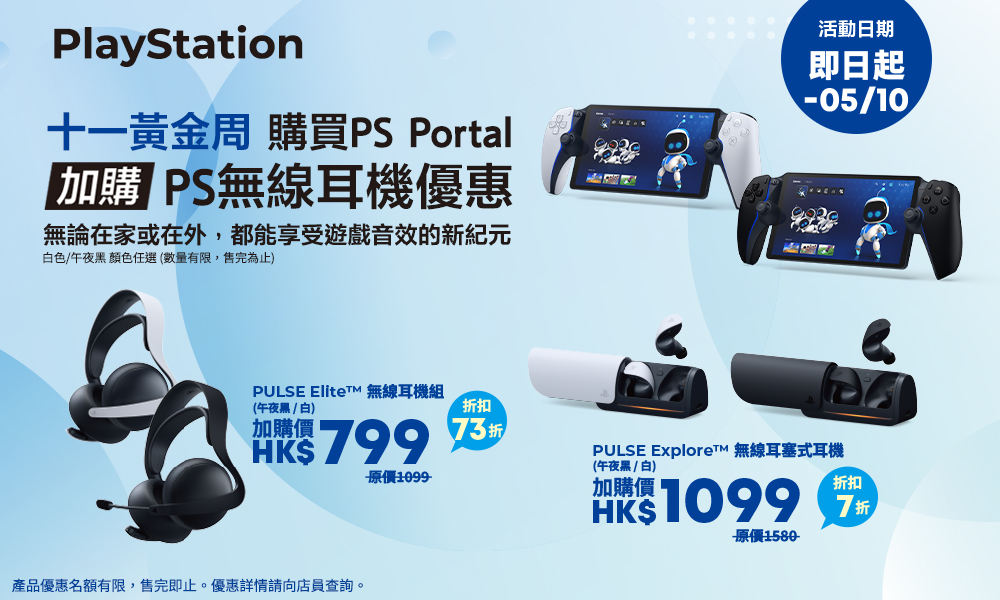 凡購買PS Portal 即可以優惠價加購 指定 Playstaion 無線耳機