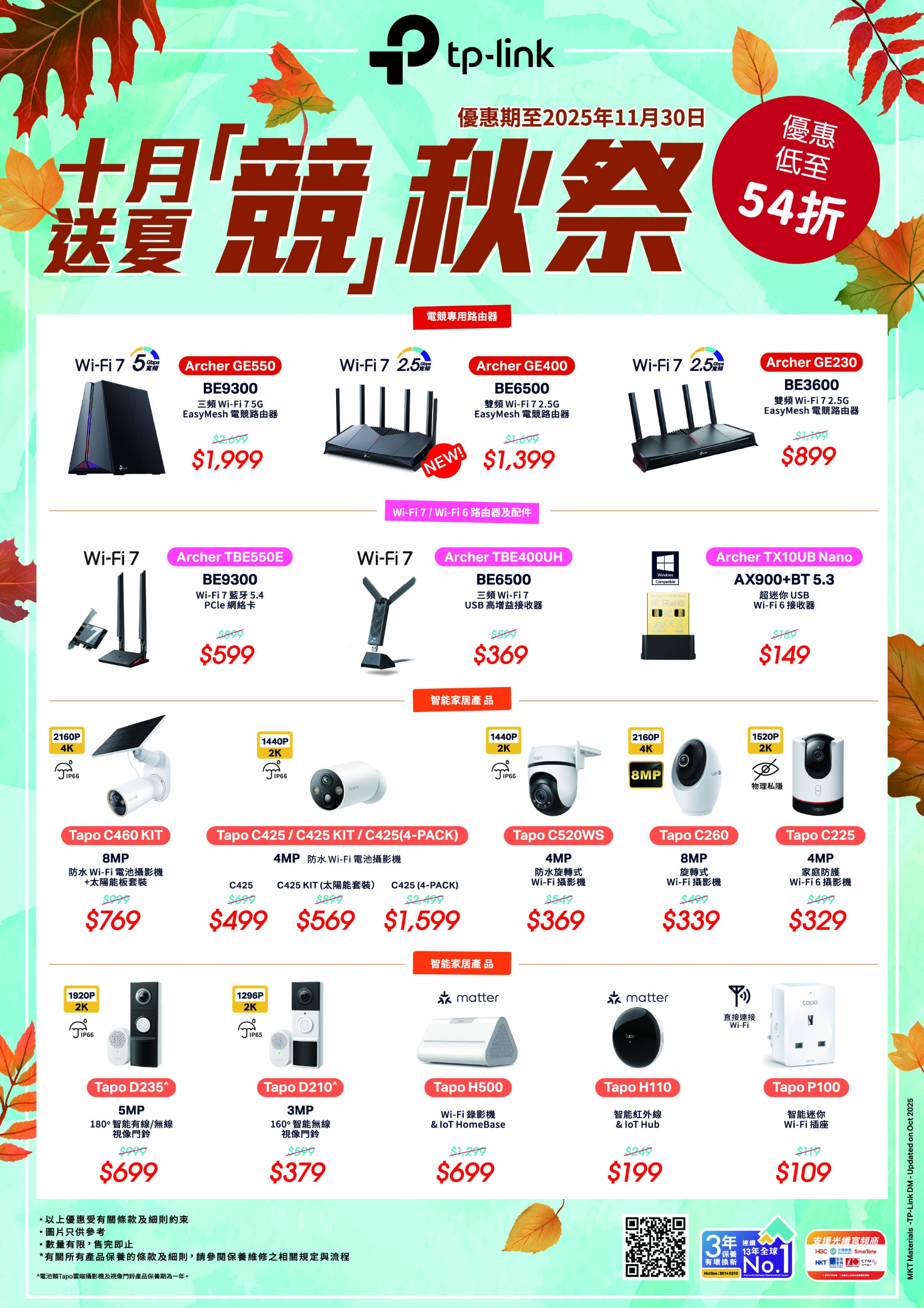 即日起至11月30日,購買指定TP-Link型號產品可享10月超值優惠