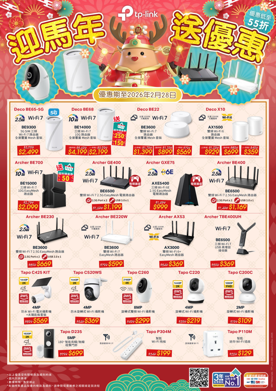 即日起至02月28日,購買指定TP-Link型號產品可享馬年超值優惠