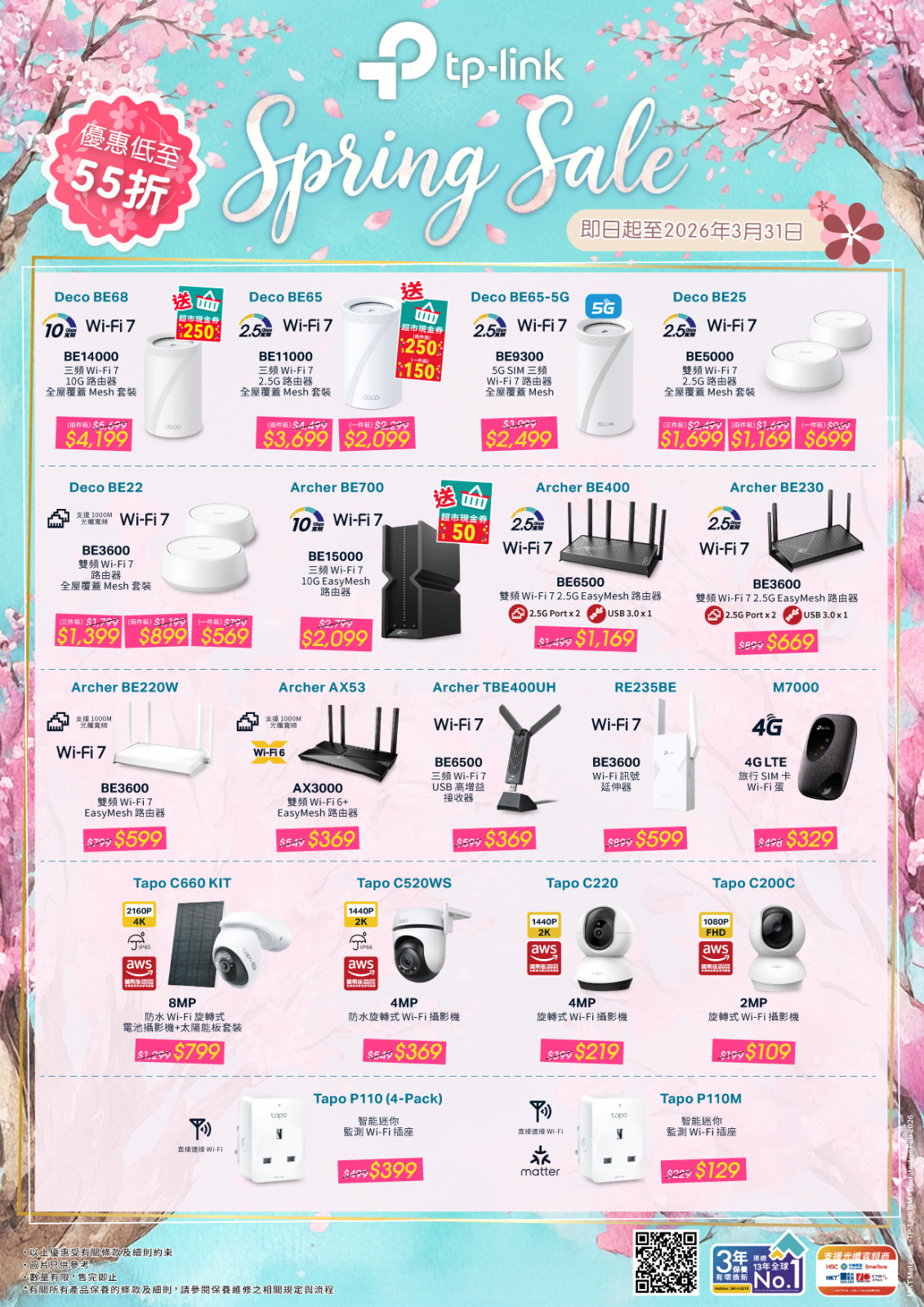 TP-Link 春季優惠,滿額即享免運費送貨!