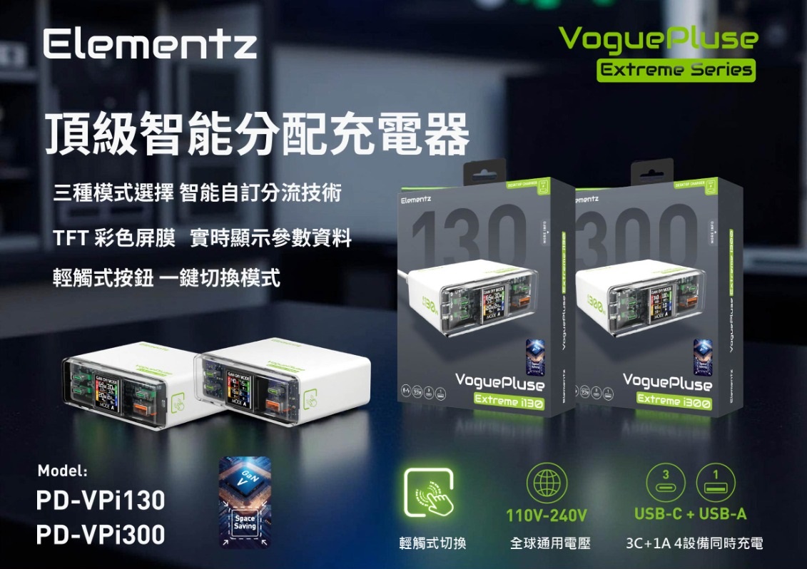 • 4 接口配置 (Type-C/Type-A),支援PD及QC快充