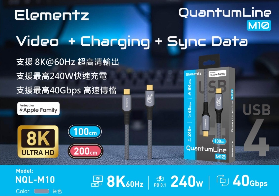 【USB4神線】Elementz 多功能USB 4高級線材(N15-PRO) 建議零售價$98 - $128