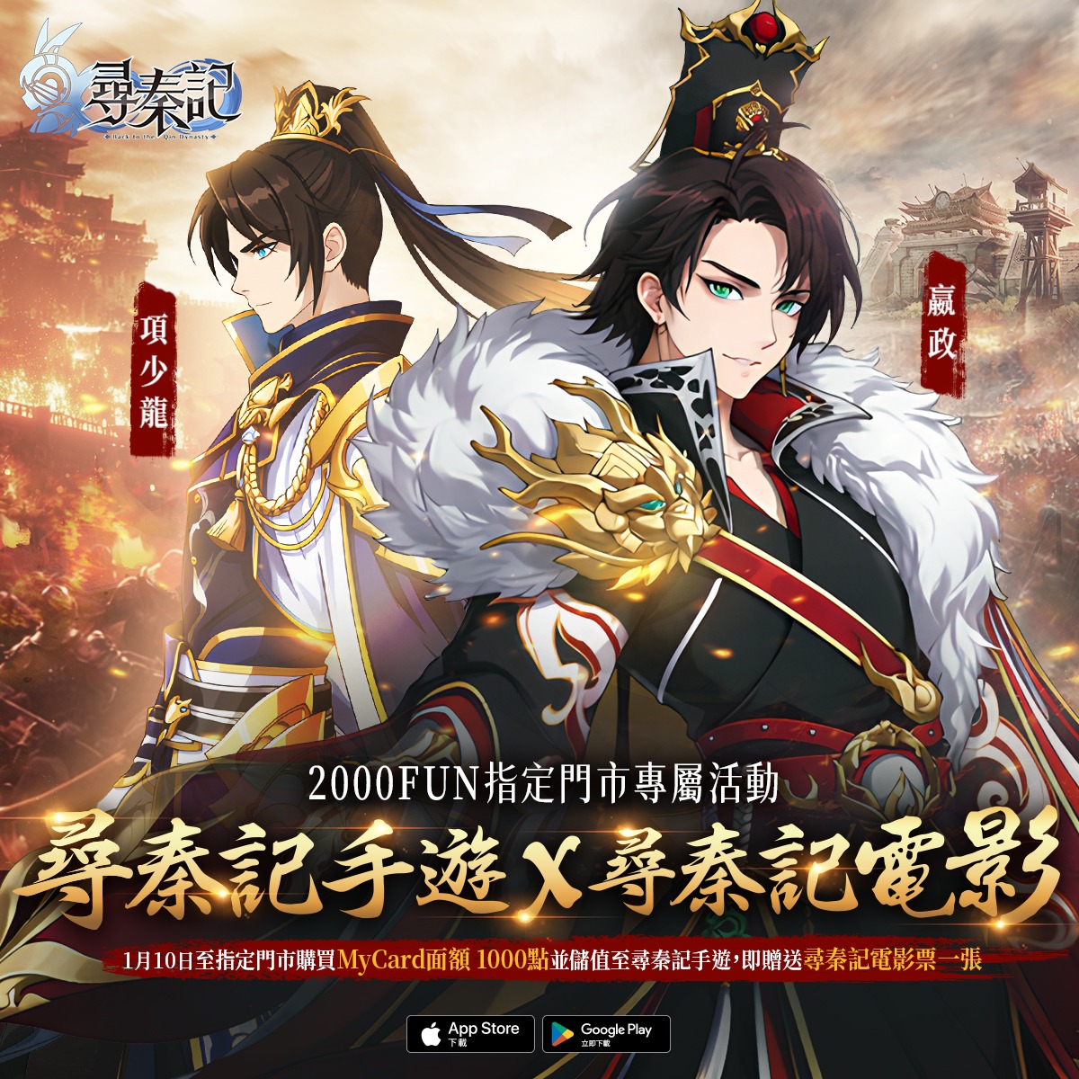 港澳專屬2000FUN快閃活動,儲值MyCard送《尋秦記》電影換票證