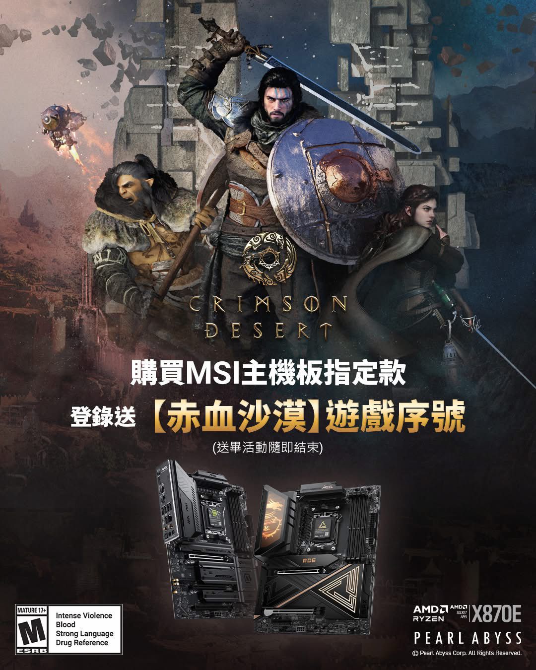 凡購買 MSI 指定主機板即送《赤血沙漠》遊戲序號