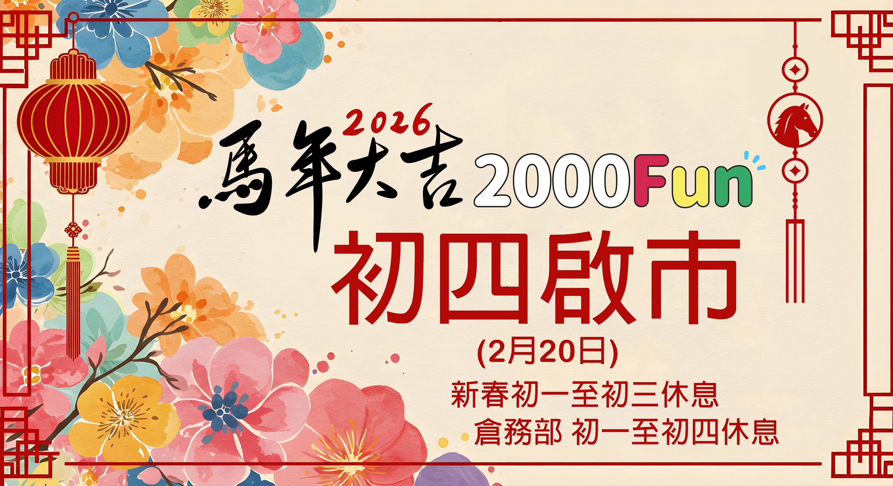 即日送貨: 2月16日(年廿九) 15:00截單;2月17日(初一)至2月22日(初六) 期間的訂單暫停,將於2月23日(初七) 恢復正常。