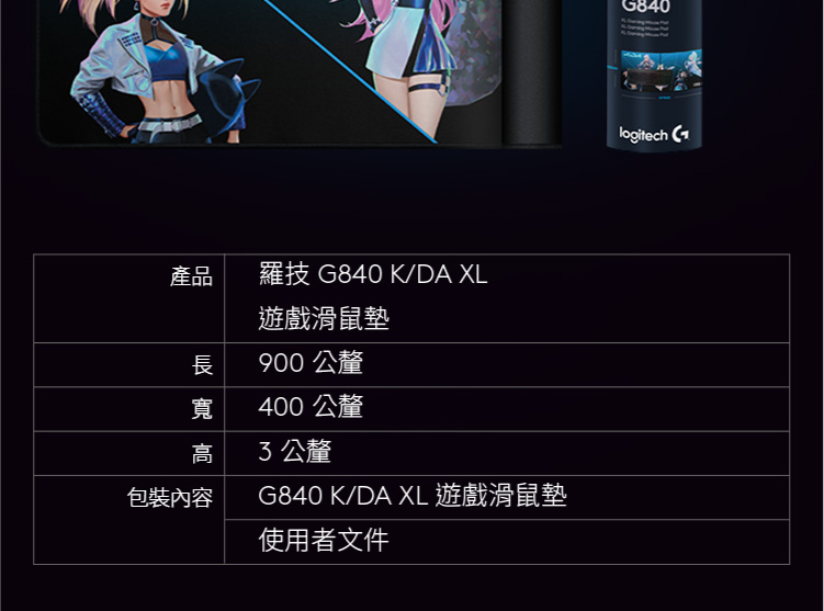 Logitech K/DA G840 XL 遊戲滑鼠墊