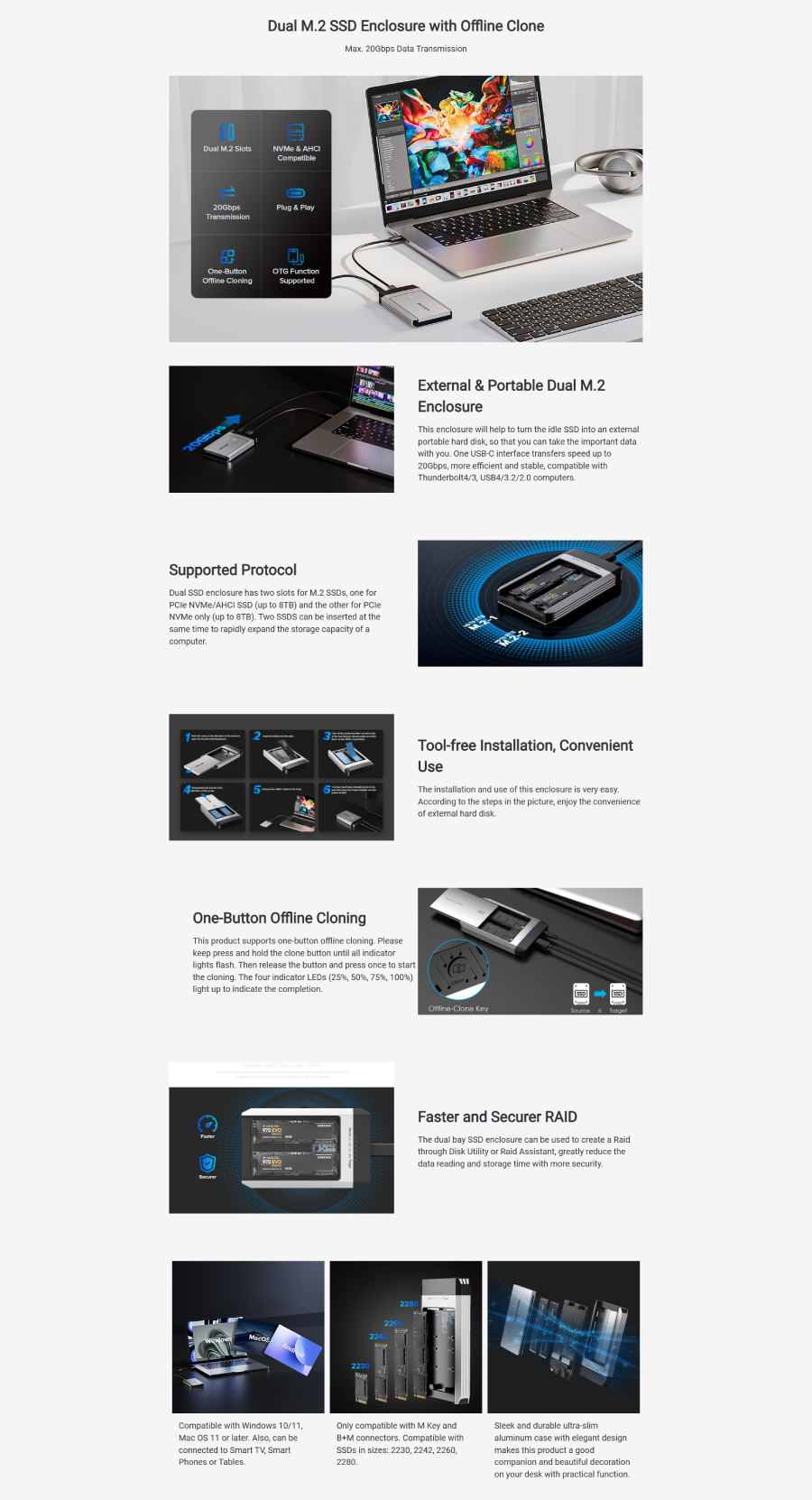 Wavlink WL-ST348 雙M.2 SSD USB-C 外置儲存盒(支援1鍵Clone)