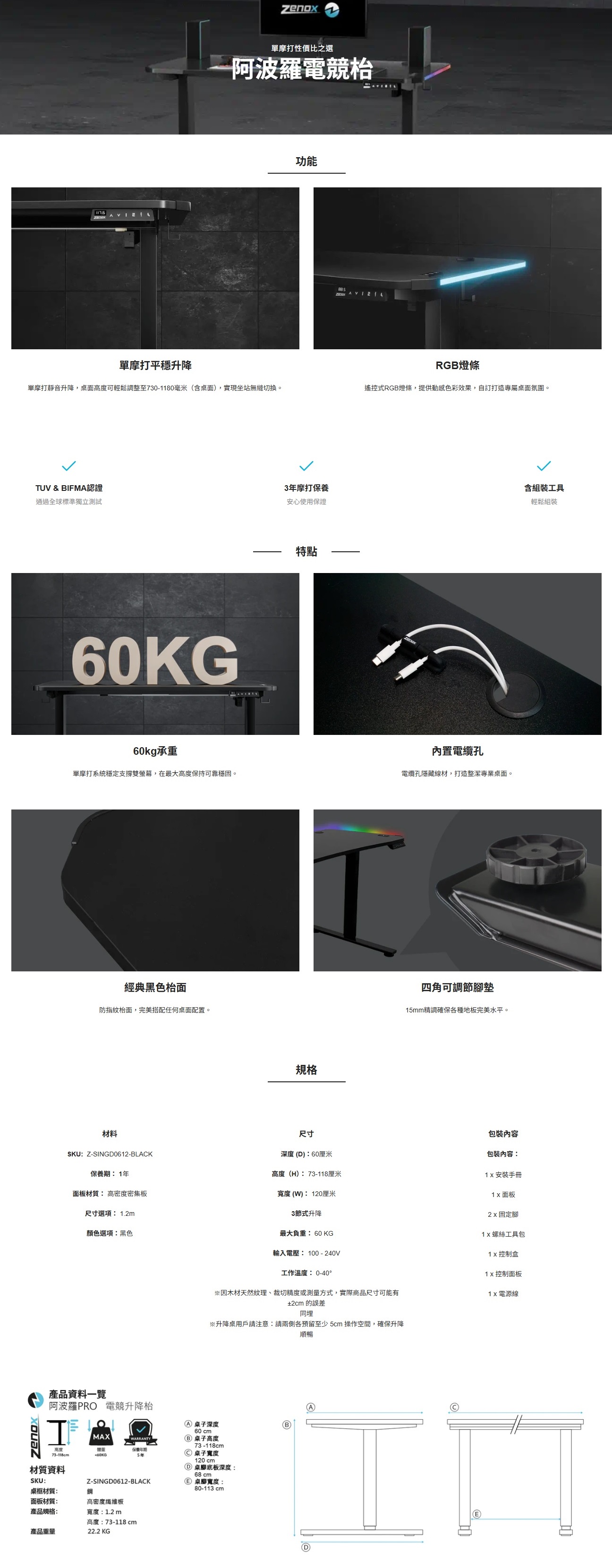 T81A Zenox Apollo 電動升降電競桌(120cm)