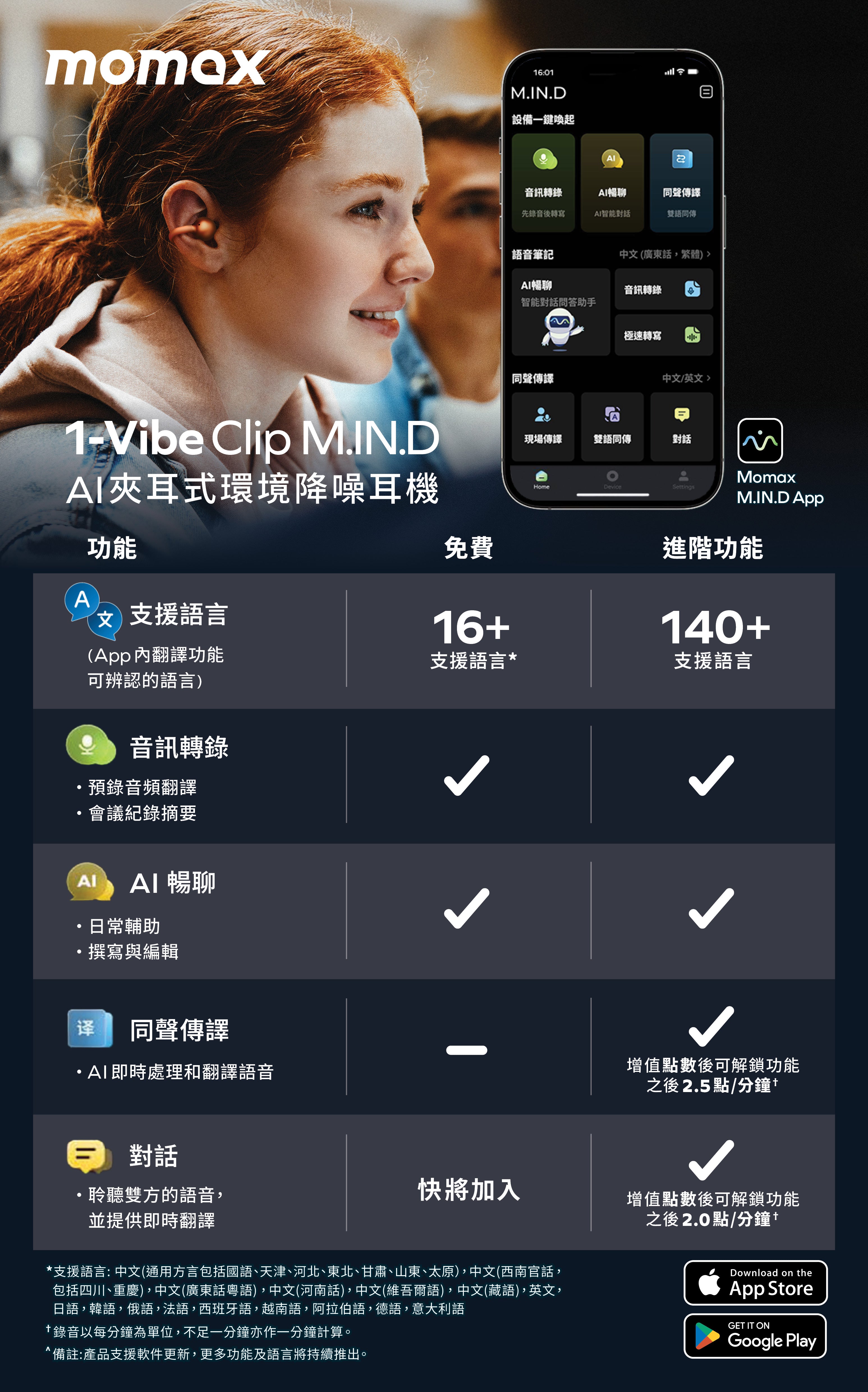 MOMAX 1-Vibe Clip M.IN.D 真無線降噪智能夾耳式耳機(黑色)