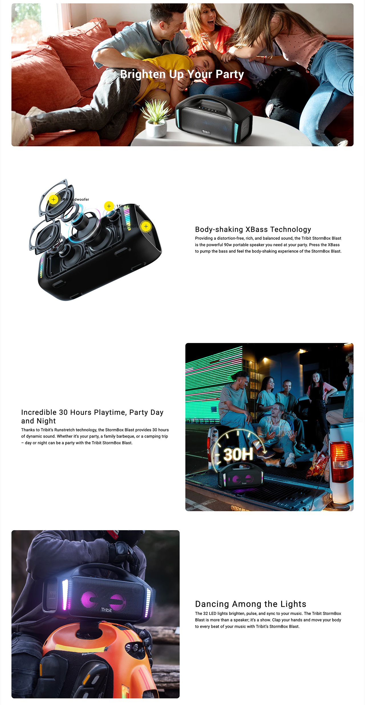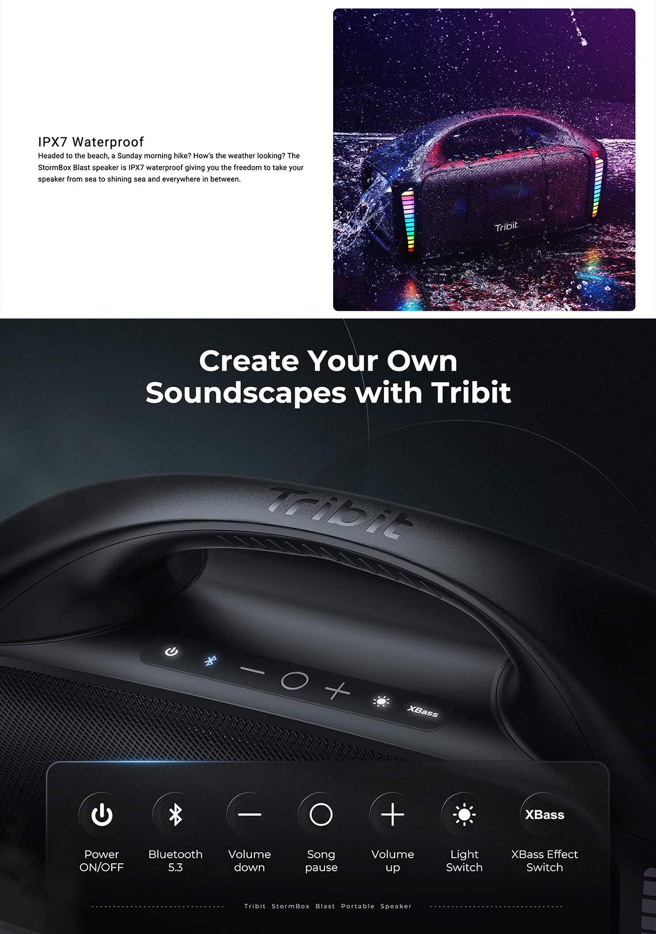 TRIBIT StormBox Blast 便攜式防水重低音藍牙派對音箱(BTS52) IPX7 | 90W大功率 | RGB炫彩