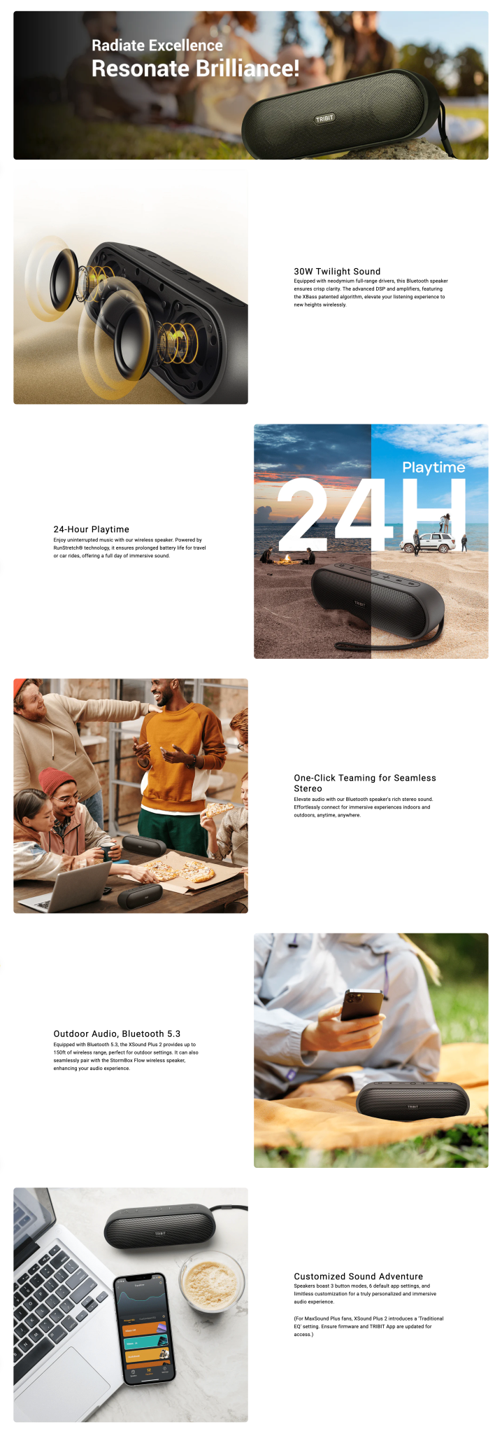 TRIBIT XSound Plus 2 IPX7防水藍牙喇叭(BTS65)(黑色)