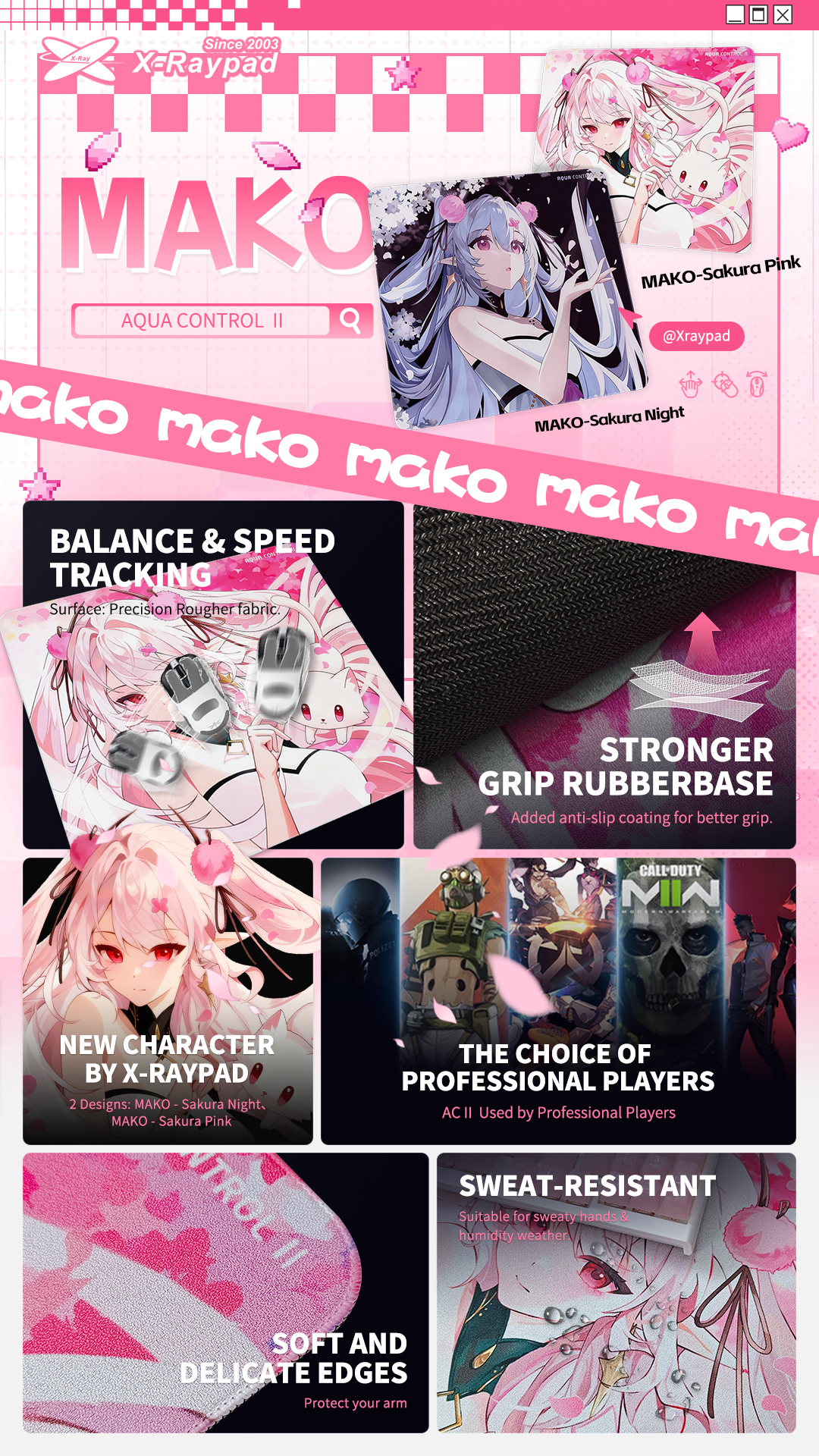 X-Raypad Aqua Control II 布質遊戲滑鼠墊(Mako Pink - 360x300mm)