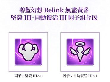 毅力 III /自動復活 III 因子套組, 這是一組可讓玩家從遊戲前期到中期更有利推進的因子套組。