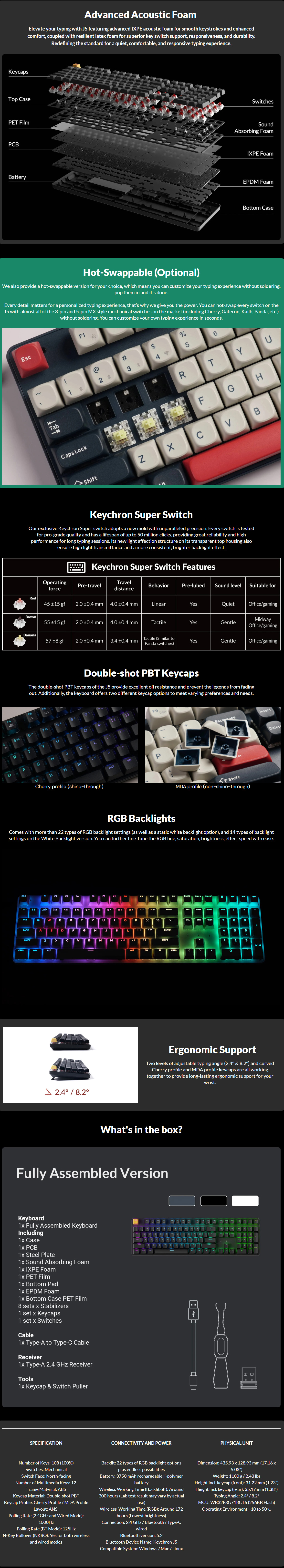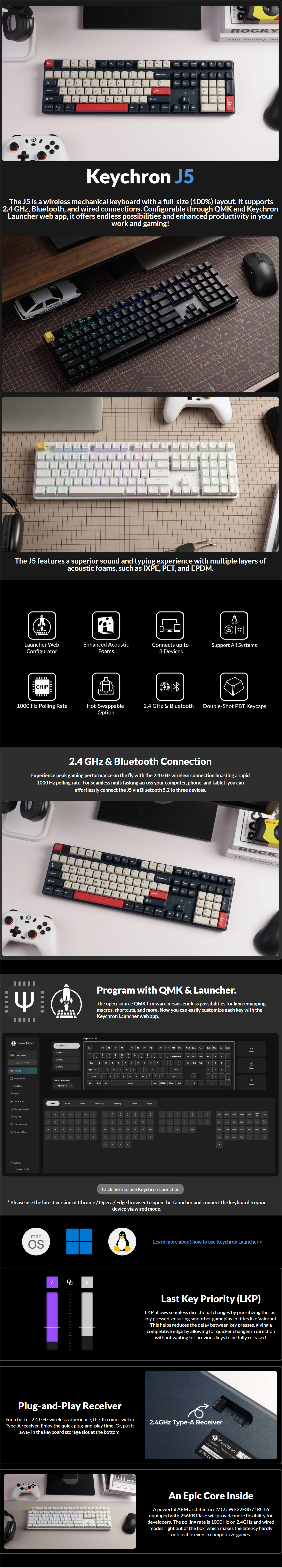 Keychron J5 (J5-H2T) QMK 三模無線機械鍵盤(青軸-黑色)