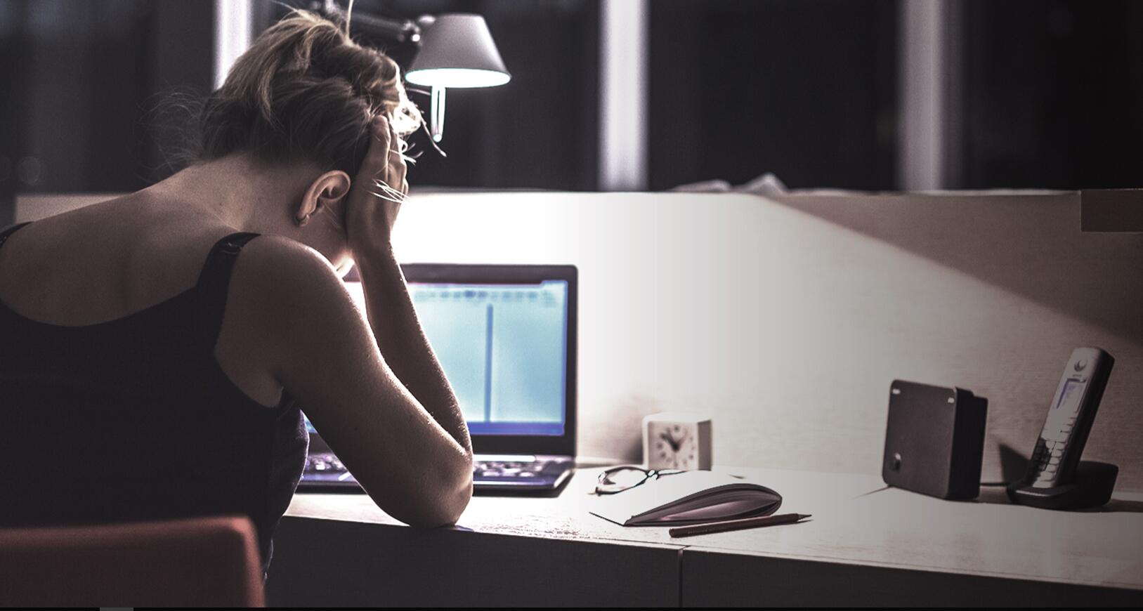 回到家,在書桌前在餐桌上趕著給客戶的報告。