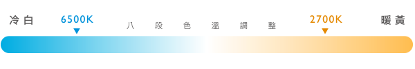 *符合美國國家標準協會定義的ANSI White 8種色溫:6500K(daylight)、5700K(cool white)、 5000K 、4500K (neutral white)、 4000K 、3500K(warm white)、 3000K 、2700K(soft white)