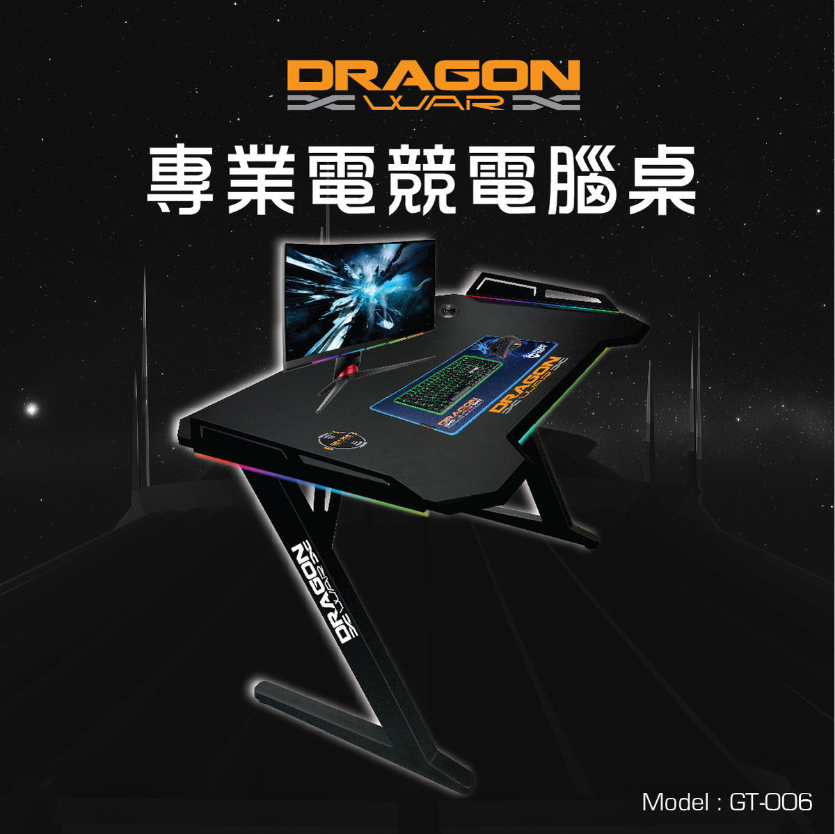 T11A DragonWar GT-006 V4 RGB 專業電競電腦桌(黑色)