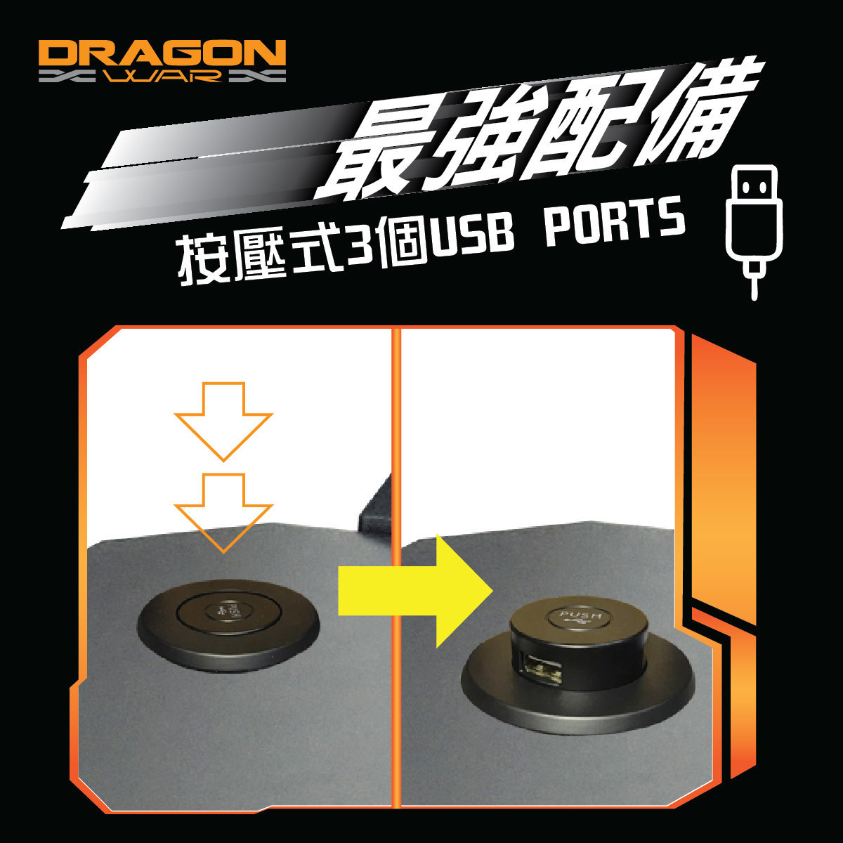 • 3個USB PORT (按壓式開放)