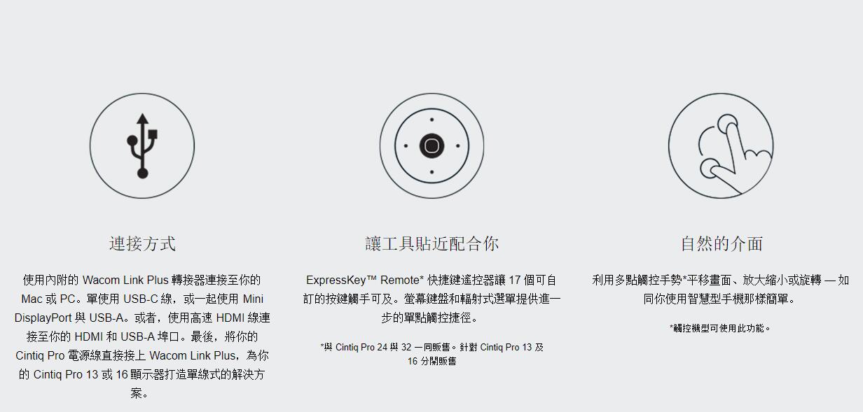 - 可透過其他配件訂製您的Wacom Cintiq Pro