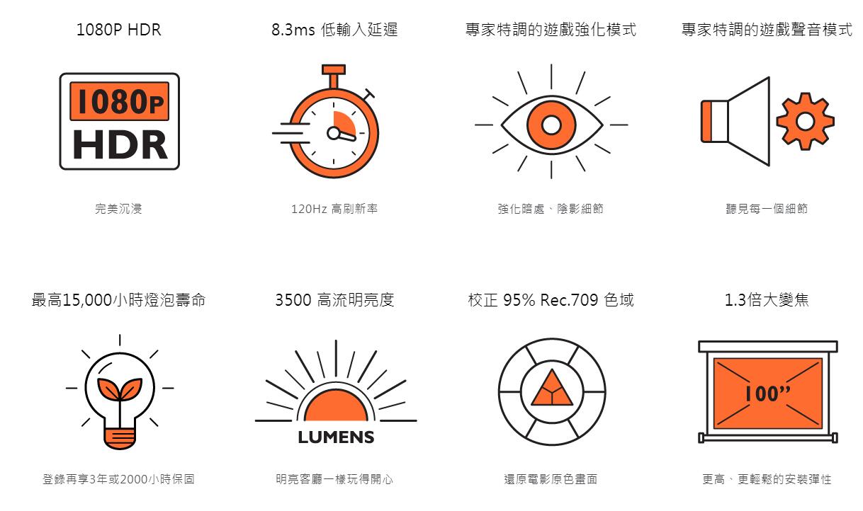 輸入延遲16.7 ms (1080p@60Hz), 33.4 ms (4K@60Hz) *downscaling to 1080p, 8.3 ms (1080p@120Hz)