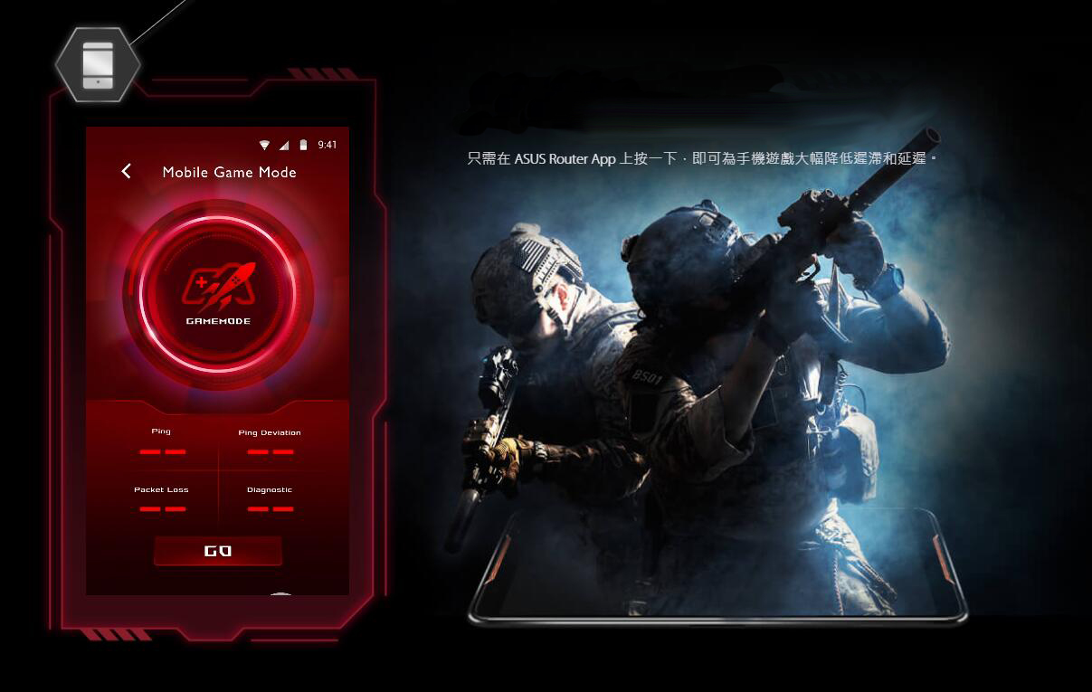 只需在 ASUS Router App 上按一下,即可為手機遊戲大幅降低遲滯和延遲。