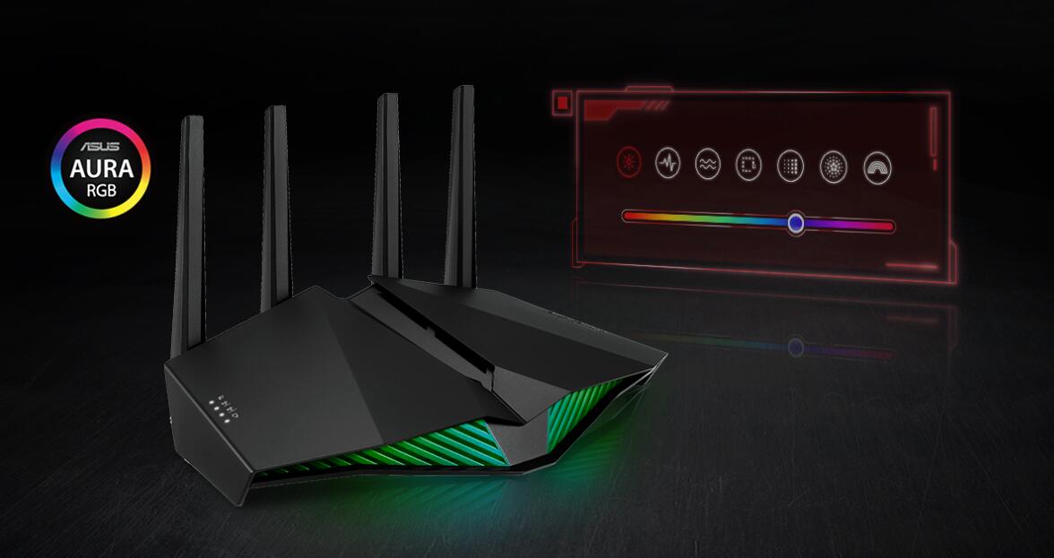 ASUS RT-AX82U 配備 ASUS Aura RGB 燈光效果,包含以數百種色彩呈現的多重色彩模式。您可以選擇各種燈光效果,並自訂燈光以符合特定模式。