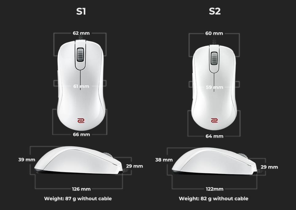 S系列在外型的設計上將整體長度縮短,讓使用者能輕易包覆滑鼠,在平面的垂直移動時,手掌邊緣與滑鼠下邊緣有足夠的運動空間。