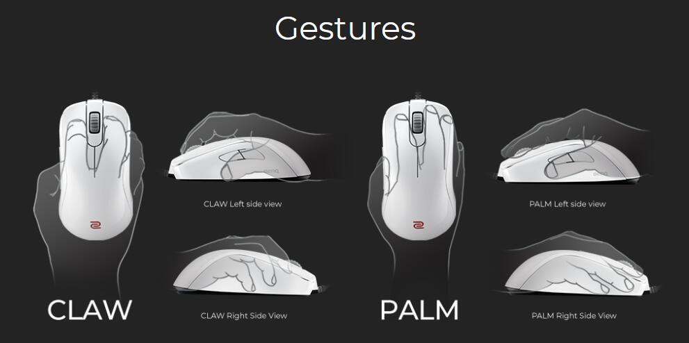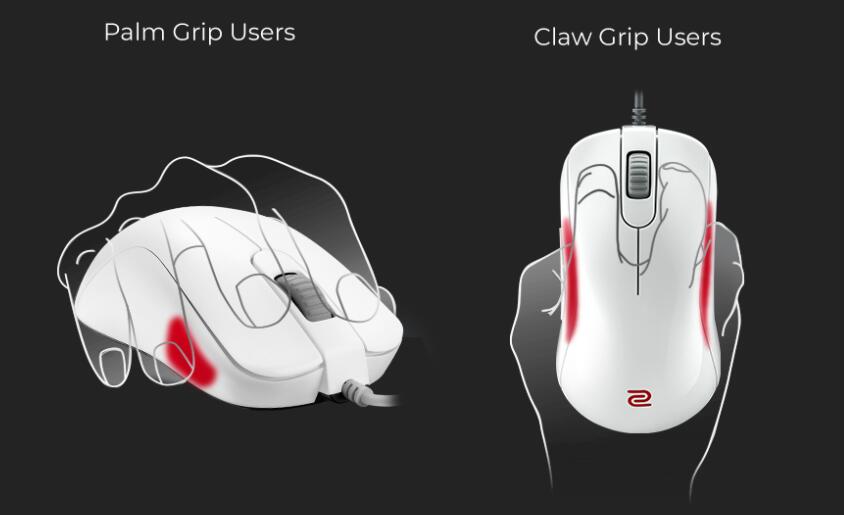 拉高兩側前端的高度,讓趴握使用者有足夠的無名指擺放空間,兩側內凹曲線的設計與ZOWIE其他對稱型滑鼠相同,提供給抓握使用者舒適的操作空間。