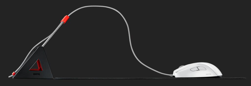 前端出線頭角度拉高的設計,使滑鼠線較不易垂放在滑鼠墊上,降低線材干擾而影響操作。