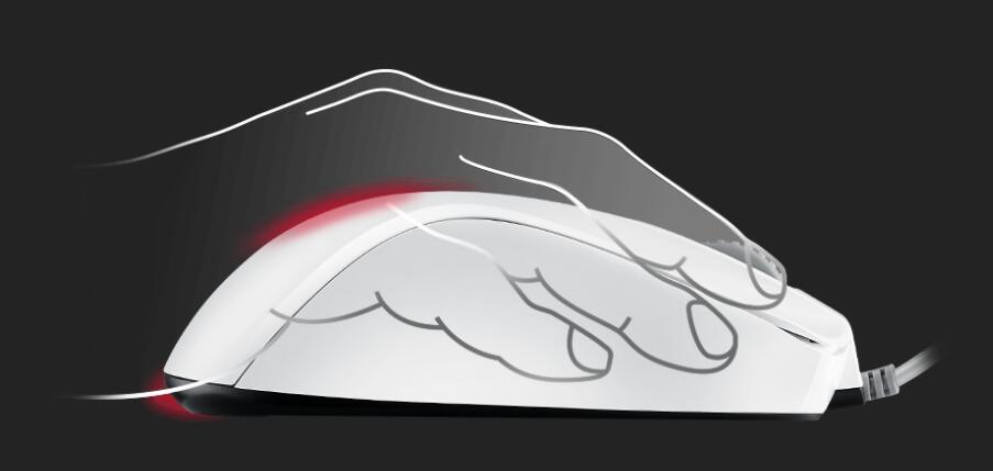 整體長度縮短,讓使用者能輕易包覆滑鼠,在平面的垂直移動時,手掌邊緣與滑鼠下邊緣有足夠的移動空間,飽滿的設計則讓使用者掌心能依附背部。