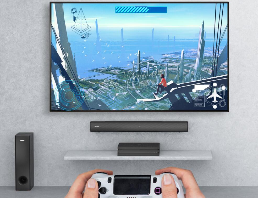 您的4K電視機看起來炫酷又有形,但其聲音效果卻往往配不上它的外觀。想要提升您的觀看體驗,只需配上Creative Stage V2,即可使您的電視機擁有配得上它的音頻。沈浸在電影或遊戲中時,Creative Stage V2通過其定製的中音驅動單元和隨附的長焦低音炮帶來的強勁重低音,為您帶來非凡的音質,讓您沈浸在電影或遊戲中