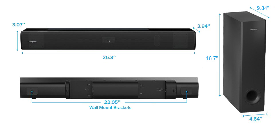 空間有限(或喜歡更簡約的裝修)的用戶,Creative Stage V2也可壁掛安裝,因此也可以將其掛在電視下方的牆壁上。
