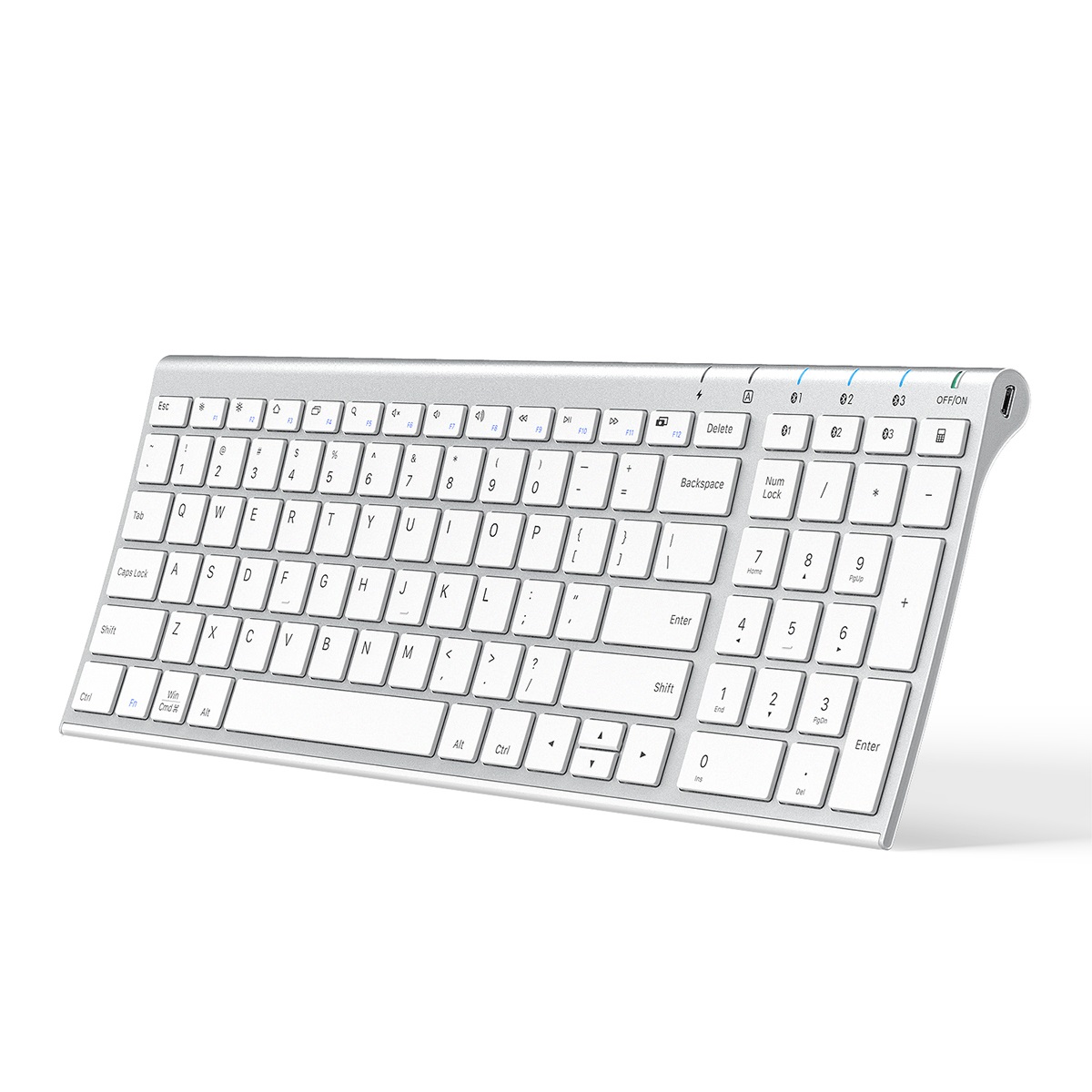 iClever藍牙鍵盤,帶數字鍵盤人體工程學設計的多設備鍵盤可充電藍牙5.1全尺寸穩定連接鍵盤