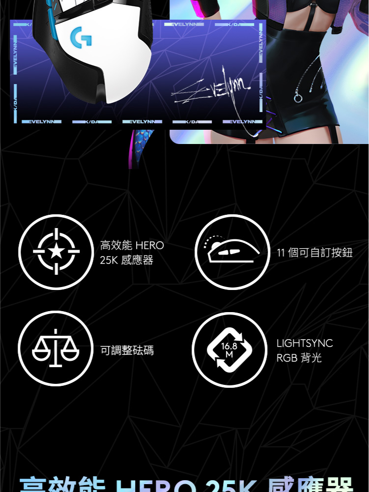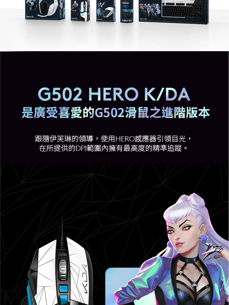Logitech K/DA G502 HERO 遊戲滑鼠