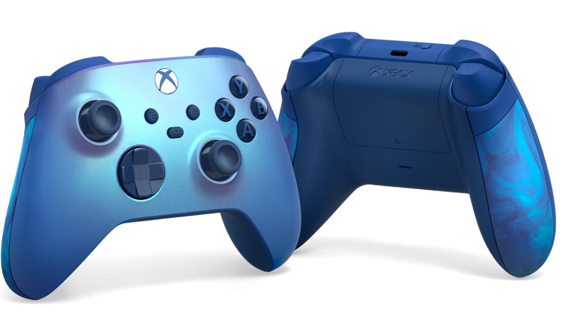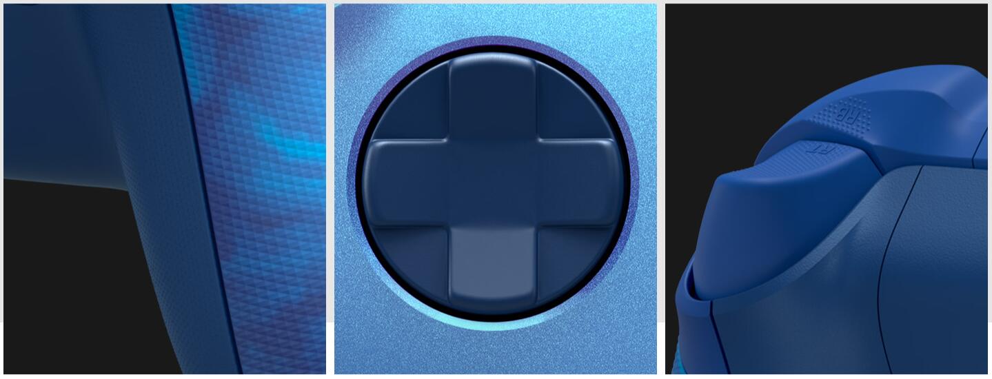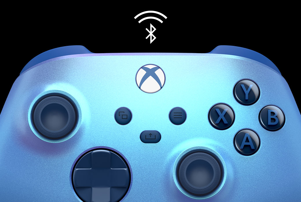 透過 Xbox 無線控制器 – Aqua Shift 特別版親身經歷超現實體驗,此控制器配件變色的藍色微光和漩渦握把。利用混合式方向鍵和條紋握把上的發射鍵、緩衝鍵和背蓋,保持專注。透過專用的「分享」按鈕順暢地擷取和分享內容。快速地配對和切換 Xbox Series X|S、Xbox One、Windows 10 電腦和行動裝置,並且在裝置上玩遊戲。*