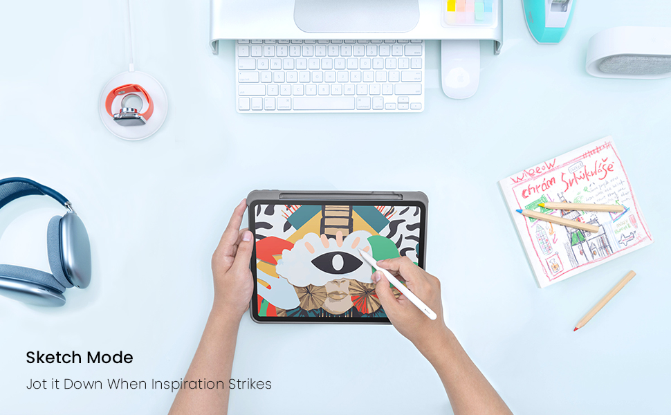 tomtoc Vertical 保護殼,適用於 11 英寸 第 3 代 iPad Pro M1 2021,帶磁性支架的超薄保護性防彎曲保護殼,適用於橫向/垂直/素描模式,包含無線 iPad 鉛筆充電,自動休眠/喚醒等功能。