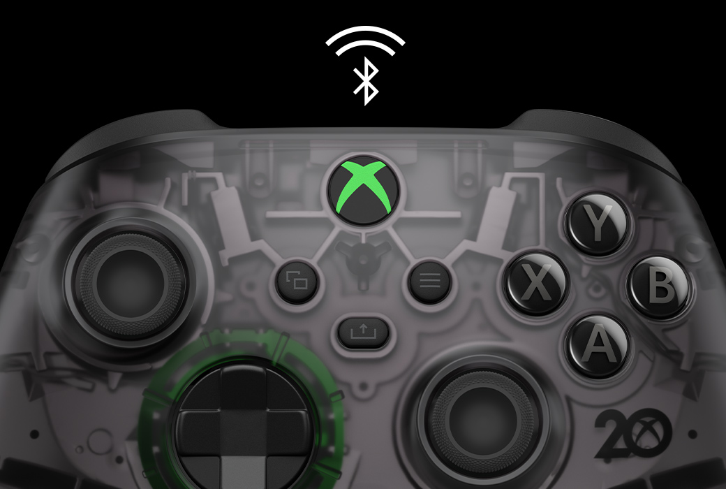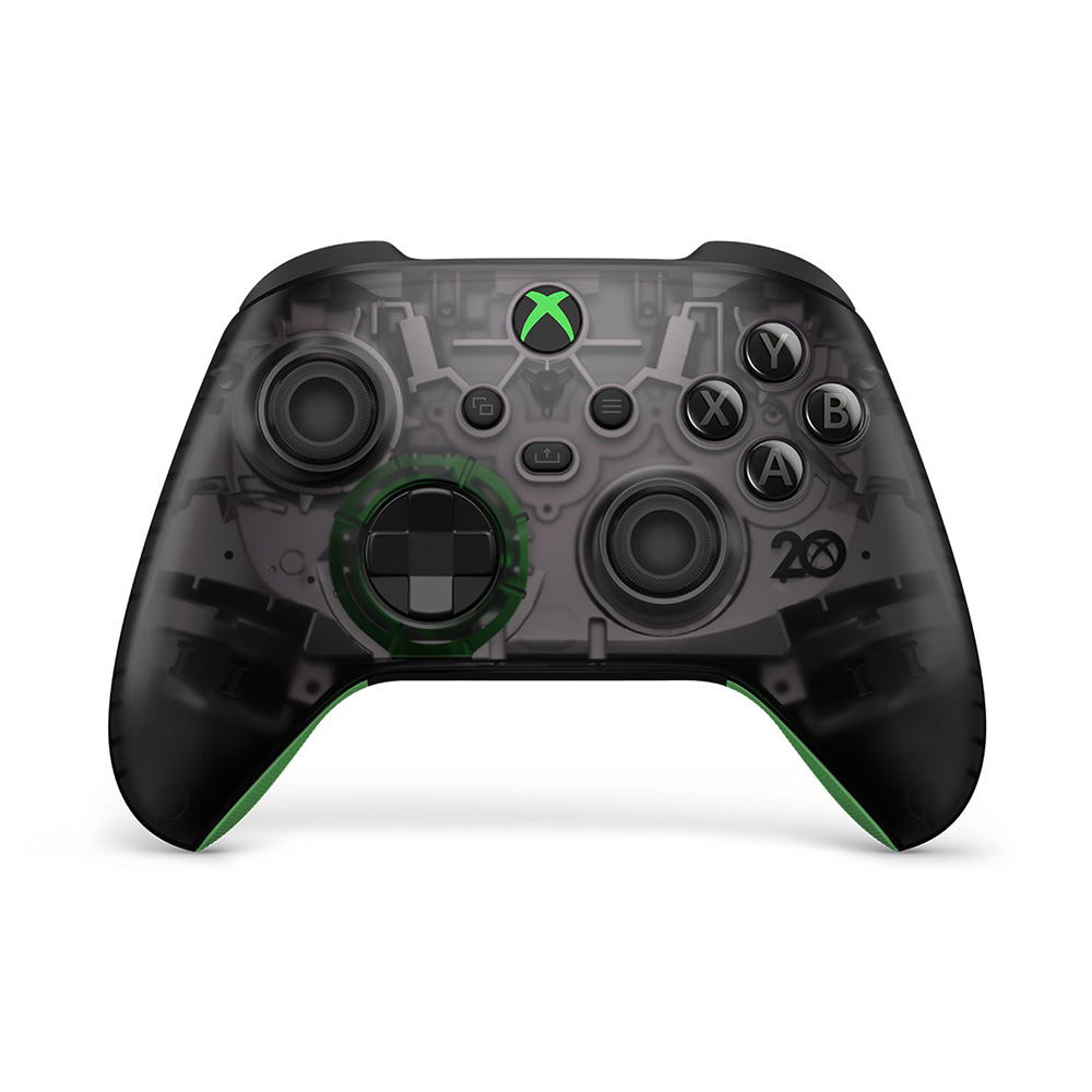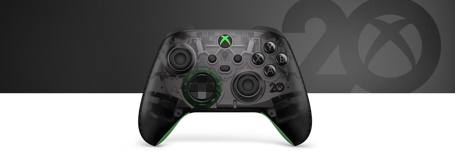 以採用經典的黑色,又帶點讓人回想到最初的綠色的 Xbox 無線控制器 - 20 週年特別版慶祝 Xbox 20 週年,還帶來更多內容。與綠色加上透明黑色的控制器顏色一起穿越時空,回到第一代透明綠色 Xbox 主機面市的那一刻。看進透明黑色上蓋,看看裡面的銀色細節,代表沿續了 20 年的 Xbox 技術。