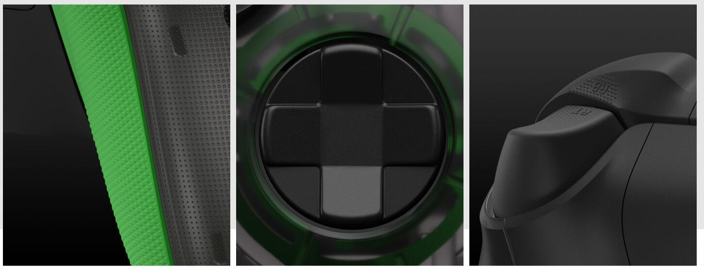 - 扳機鍵(LT、RT)、肩鍵(LB、RB)及手掣背面都有防滑紋理,手感更佳,不會滑手