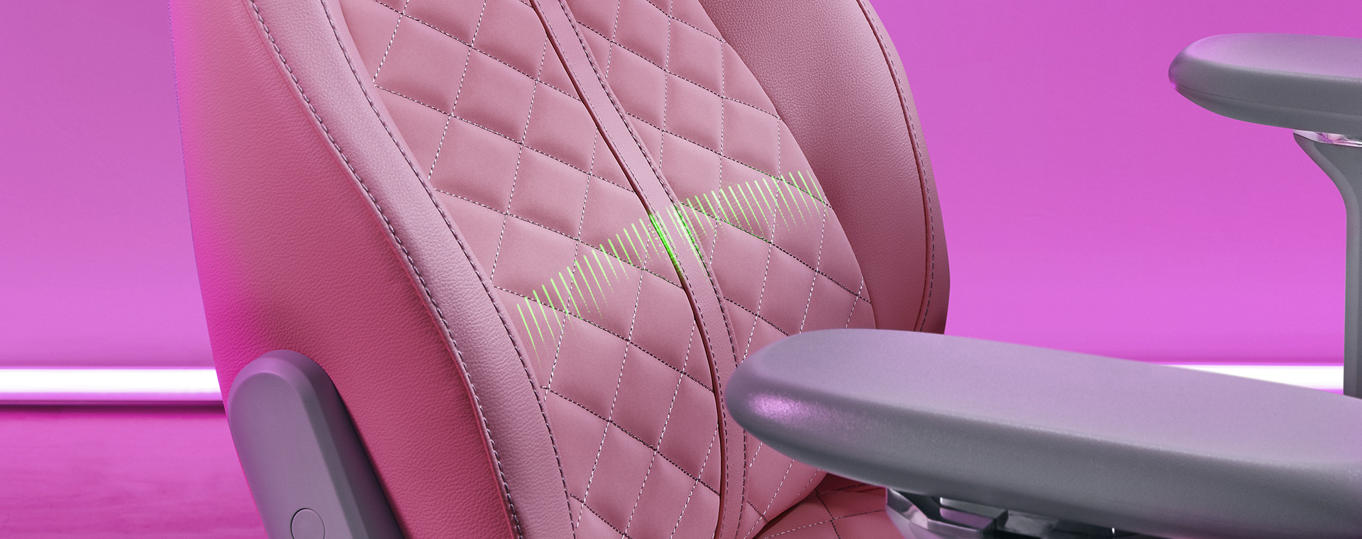 Razer Enki 的腰枕曲線能輕柔地為你支撐下背部,並讓你保持自然的坐姿,即便久坐也能維持正確的姿勢,使背部更加輕鬆。