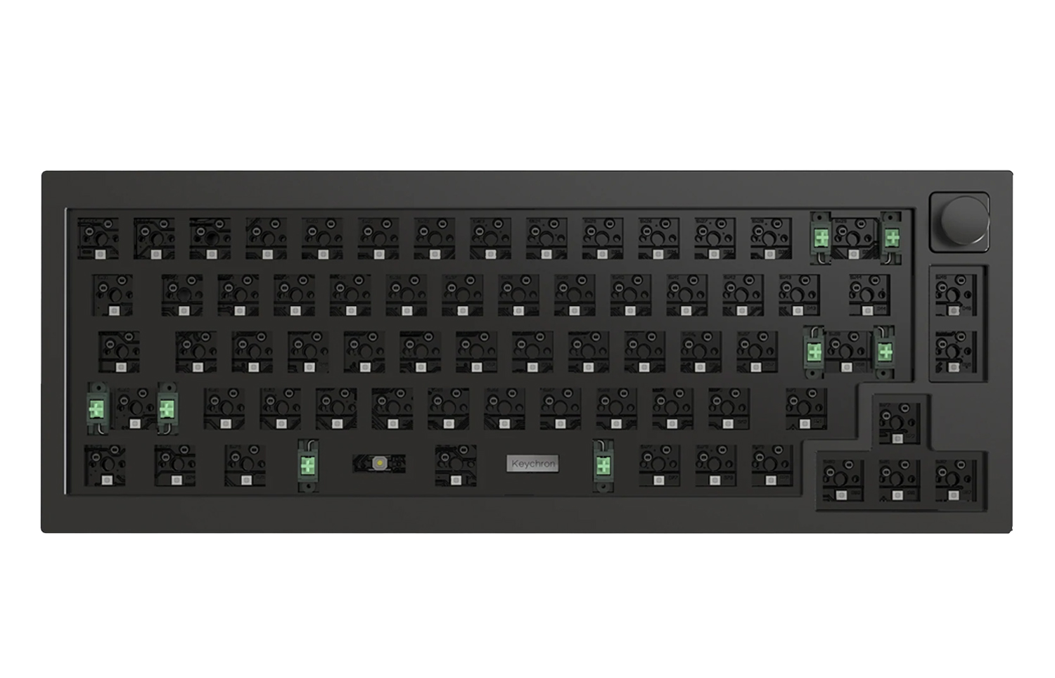 The hot-swappable sockets are mounted on the PCB, so you can install or change the switches without soldering. The PCB supports both 3 pin and 5 pin MX mechanical switches.