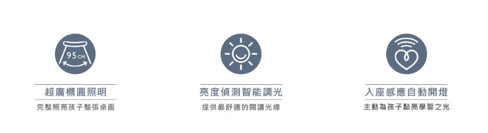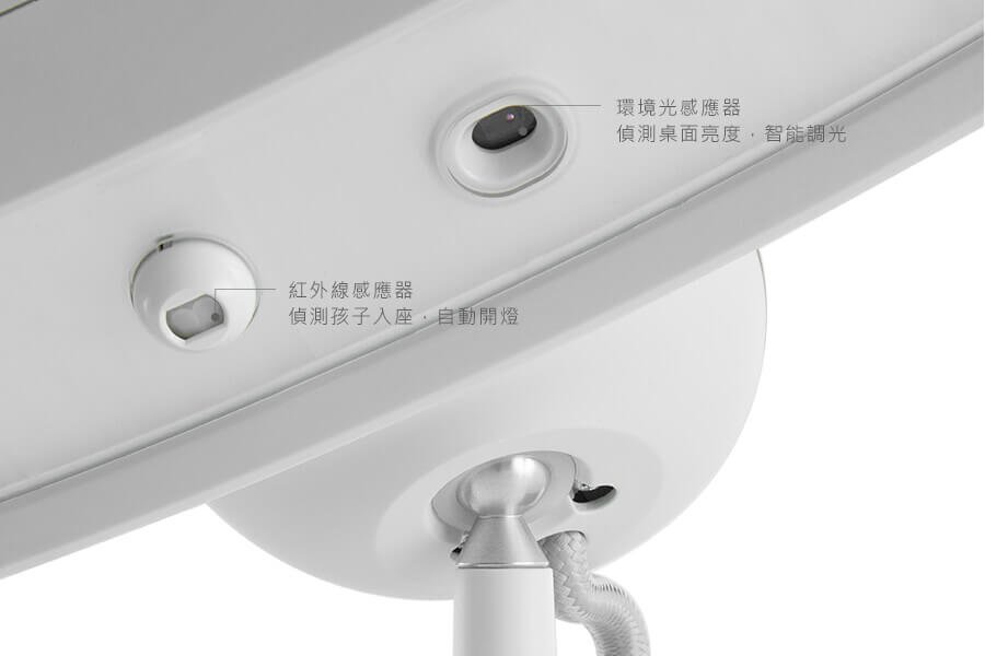 在光線不足的狀況下,孩子常常會忘記開燈,摸黑看書導致視力傷害。只要開啟入座感應功能,可透過紅外線感應偵測,在孩子入座時自動開燈。