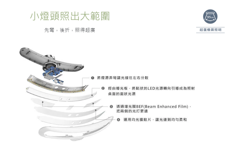 寬廣均勻再升級,BenQ 獨家 95cm 超廣橢圓照明