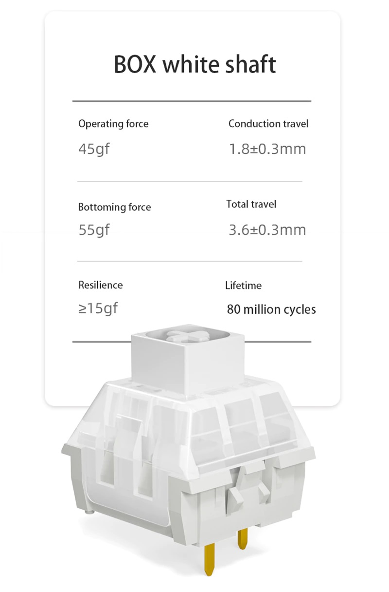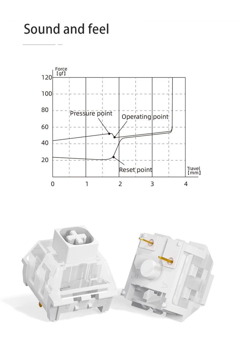 Total travel: 3.6 mm (+/- 0.3 mm)