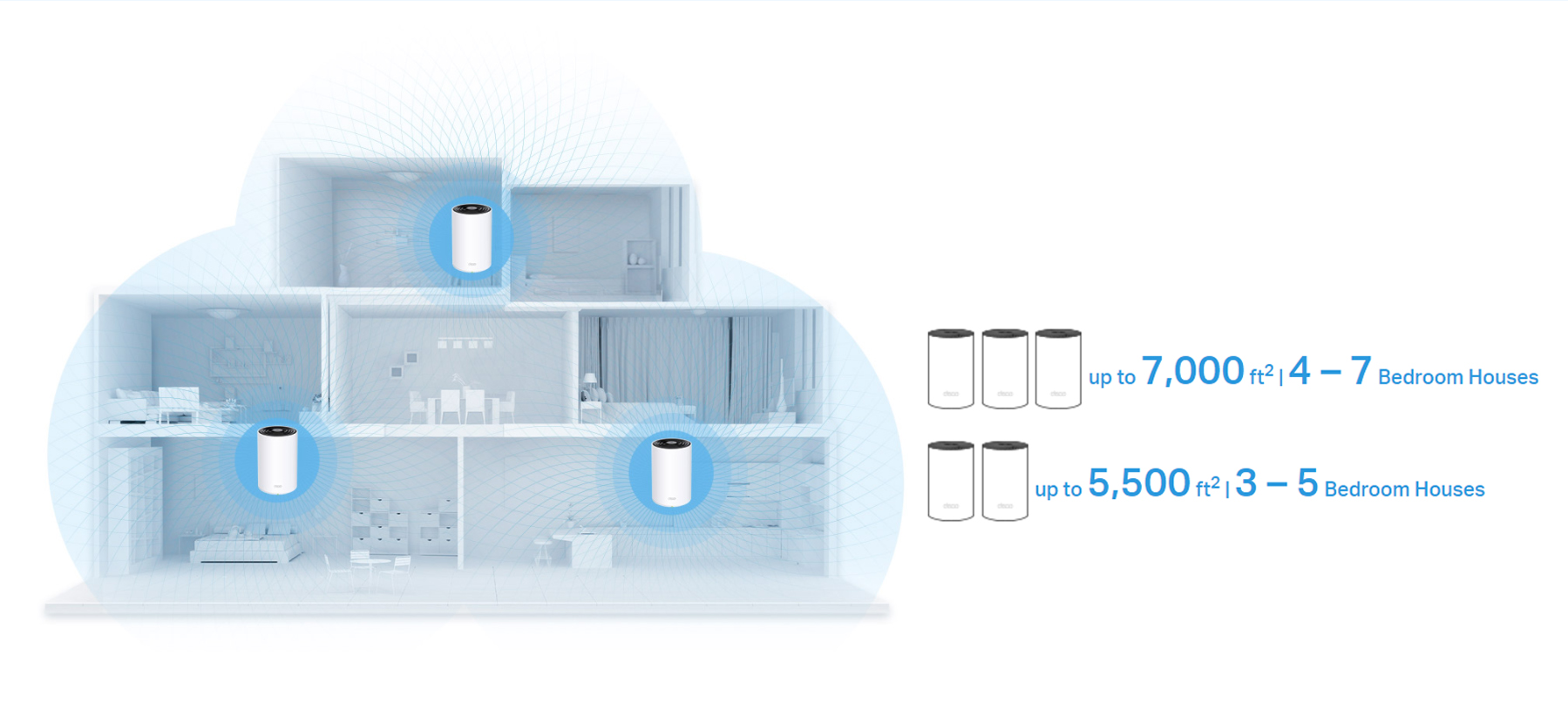 Eliminate weak signal areas with the tri-band mesh WiFi. Deco X68 provides an extra 5 GHz band working exclusively as the strong backhaul between deco units. This creates seamless coverage with clearer, stronger whole home WiFi.