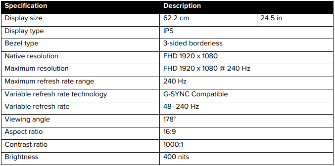 HyperX Armada 25吋 IPS FHD 240Hz 遊戲顯示器