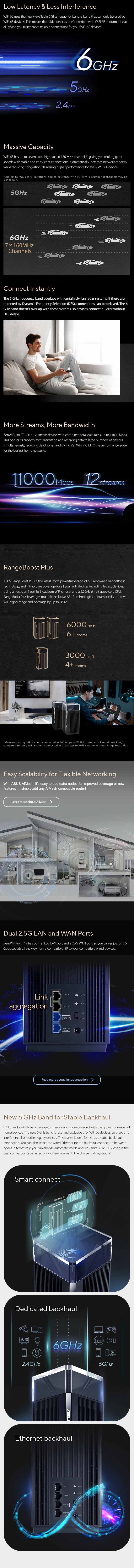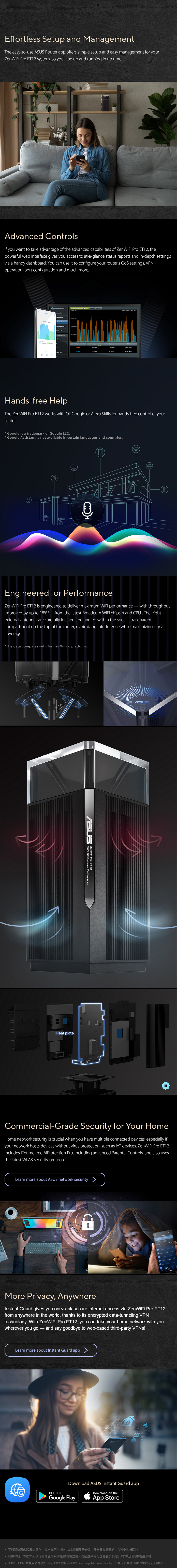 ASUS ZenWifi Pro ET12 Wireless-AXE11000 Mesh Wifi System雙頻路由器(WIFI 6E)(黑色-2 Pack)