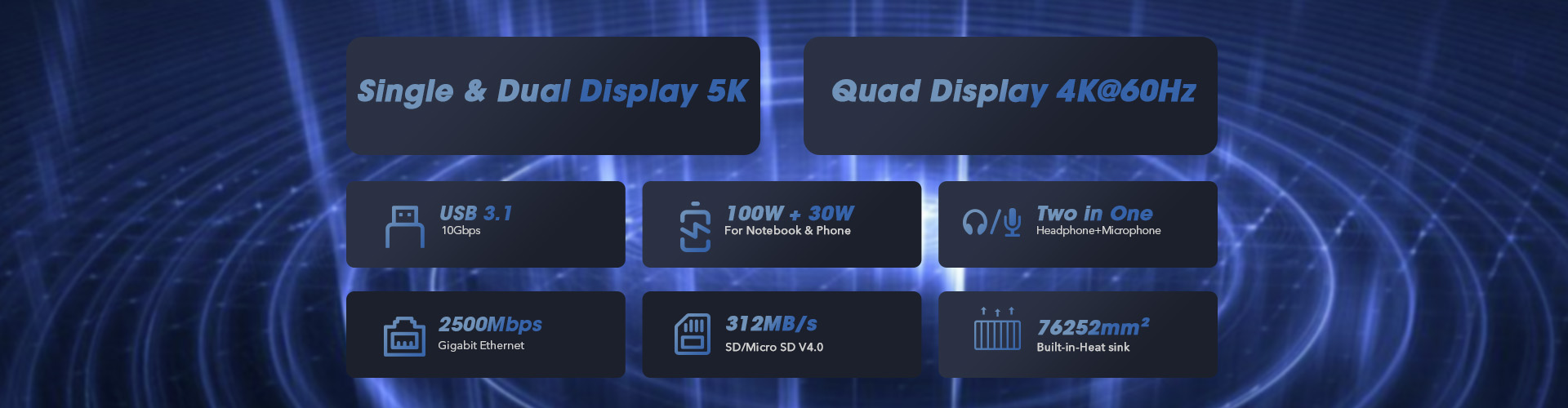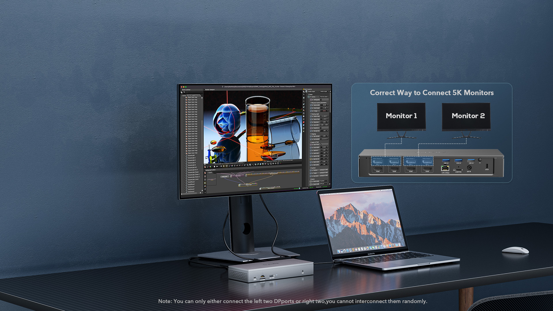 - Single & Dual display 5K@60Hz: Supports resolutions up to 5120 x 2880@60Hz when connecting dual DP ports simultaneously to a 5K monitor